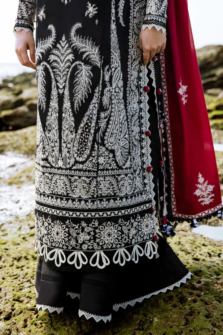 Embroidered Front Left Panel (Lawn) Black 1 Piece